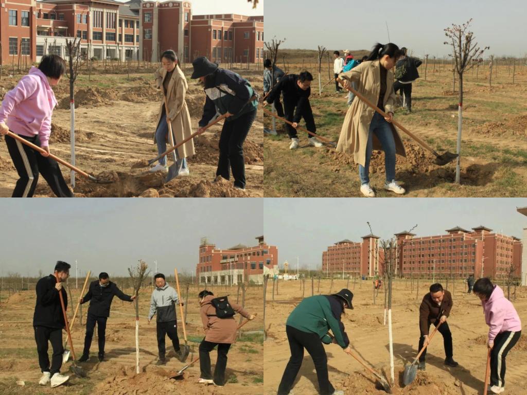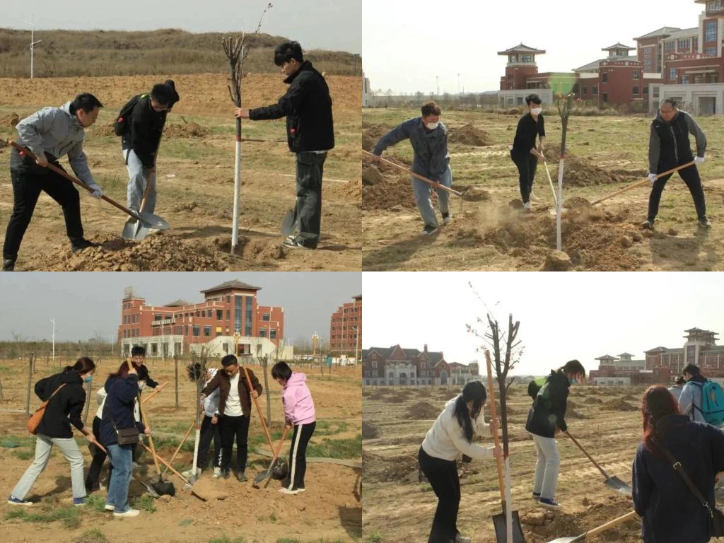 活动中,师生们分工协作、干劲十足,铲土培苗、填土踩实、浇水覆土、合力栽种,道道工序细致认真、有条不紊。经过3个小时的共同努力,100余株紫叶李在春风中昂然挺立,为初春的富平校区增添了一抹新绿。