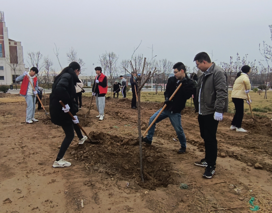 3月17日上午,计算机学院党总支组织师生党员赴渭南师范学院富平校区开展“师生共植树 校园绿长流”主题党日活动。