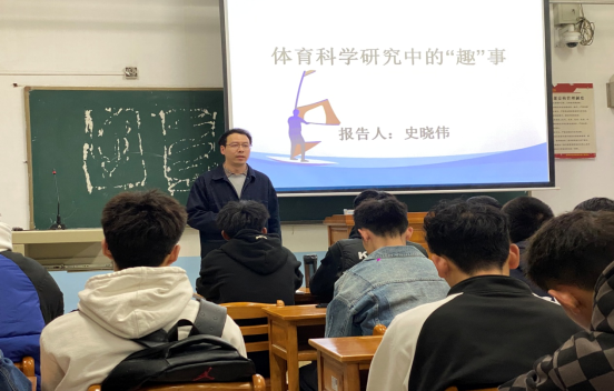 3月30日晚,体育学院举办“渭南师范学院2023年百场名家学术”报告会,报告由体育学院史晓伟博士作题为“体育研究中的‘趣’事”学术讲座,全体大三学生和部分中青年教师参加。会议由体育学院科研副院长杨枭主持。