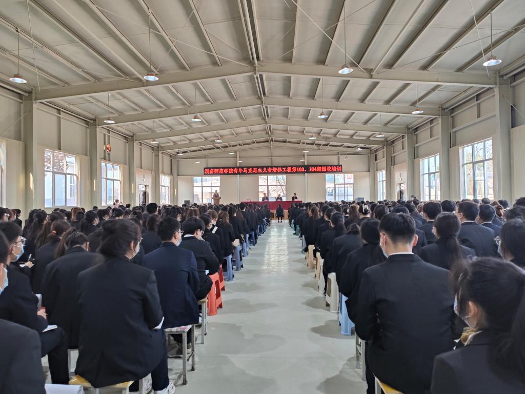 为深入学习宣传贯彻党的二十大精神,加强青年学生思想政治教育,4月1日我校在大学生活动中心举办渭南师范学院青年马克思主义者培养工程——第103、104期团课培训。校团委书记赵琦,副书记刘娟宁、潘涛参加团课开班仪式,各学院入党、入团积极分子,优秀团干部、优秀团员等600余名学生参与培训。