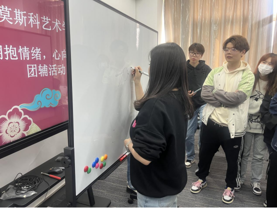 4月6日下午,莫斯科艺术学院开展以“拥抱情绪 心向未来”为主题的团体辅导活动,莫斯科艺术学院副书记叶晓燕、大学生心理健康教育指导中心主任刘原、莫斯科艺术学院学工办主任段菲、辅导员刘晨扬、心理专干师艺园及2021级、2022级心理委员参与此次活动。