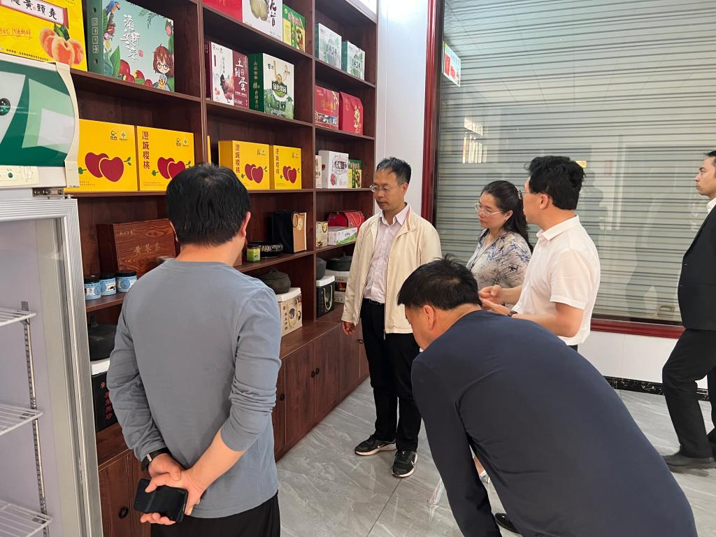 随后,在李刚的带领下,先后深入澄城县扶贫832平台入驻企业陕西百康农业开发有限公司,对企业销售特色农产品及农产品深加工项目进行了了解,优秀创业企业家、陕西百康农业开发有限公司总经理和胜军热情地推荐了满足进校园需求的农产品、同时介绍了企业产品优势以及合作能力,他指明“陕西百康农业开发有限公司是乡村振兴农户的代言人,公司销售的澄城农产品中有三分之一来自当地农户,平台优先推荐创业有特色有专利的个体户,同时公司一直致力于农产品深加工领域发展,带领农户们谋发展、创路子、盘活农业经济。”在澄城县郭家庄村党员活动室,村党总支姬书记就澄县特色名优樱桃品种销售优势及下一步开展进校园直销宣传活动进行了交流。在澄城县安里镇人民政府,镇长韩黎勇重点介绍了安里镇大棚蔬菜、水果种植、面粉面条等农副产品的基本情况,双方就产品进校园消费活动达成初步意向。