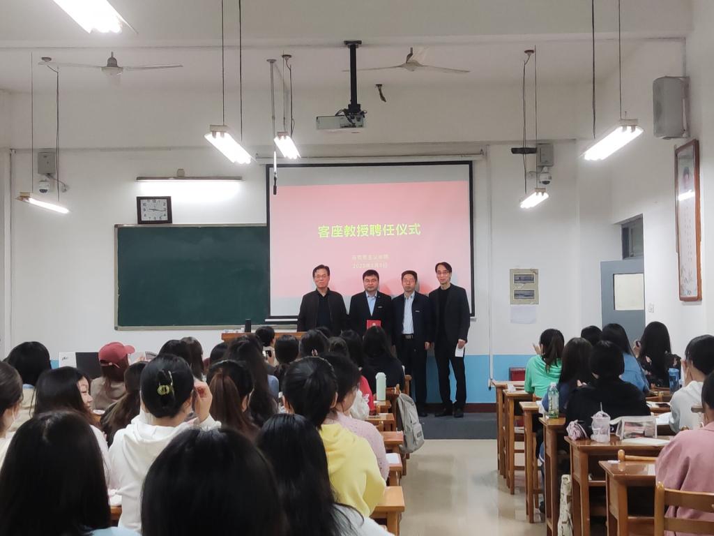报告前,马克思主义学院党总支书记赵国峰为吕亚鹏颁发了马克思主义学院客座教授的聘书。