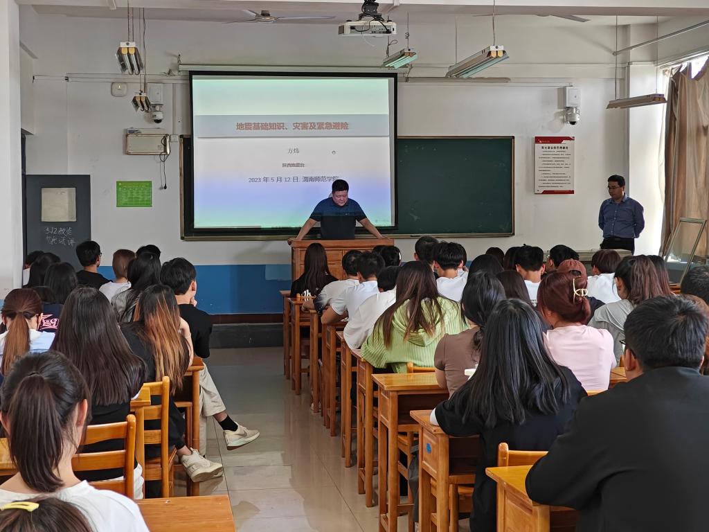 本次活动分为防灾减灾日报告会和逃生避险演练。学校邀请了陕西地震台副台长、高级工程师、陕西省地震科普宣讲团成员,方炜教授为我校师生作防灾减灾报告。方炜教授以《地震基础知识、灾害及紧急避险》为题,结合自已的亲身经历,阐释了地震基础知识,普及了紧急避险方法。报告内容丰富、通俗易懂、深入浅出,师生们受益匪浅。