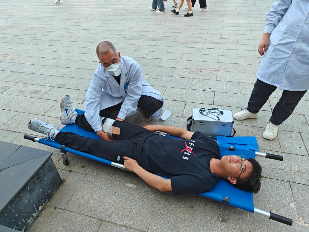 逃生避险演练包括知识宣讲、室内避险、疏散逃生、观摩点评四个阶段。活动现场,保卫处治安科科长张彦荣宣读了演练实施方案,介绍了地震来临时正确的逃生方法。16点整,随着预示地震的警报响起,马利涛宣布“演练活动正式开始”,上课教师告知学生“地震来了,不要慌”,指挥学生护住头部迅速躲到桌下或墙角处。警报解除后,学生按照规定路线迅速有序撤离,到达疏散地点清点人数,全员疏散仅用时3分26秒。疏散过程中,消防员和医生护士展开现场搜救工作,及时将“受伤学生”撤离到安全区域,并立即开展创伤包扎、心脏复苏等抢救工作。