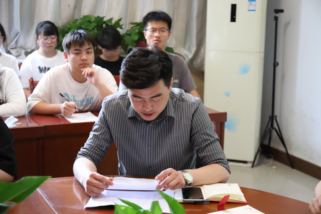 学生代表赵凯成表态发言。他表示,我们将认真对待这次培训,不辜负组织的信任和精心培养,认真听讲、深入思考、积极研讨,在学习中成长,在成长中实践,为思想补钙,为精神加油,不断提高自身素质能力水平。
