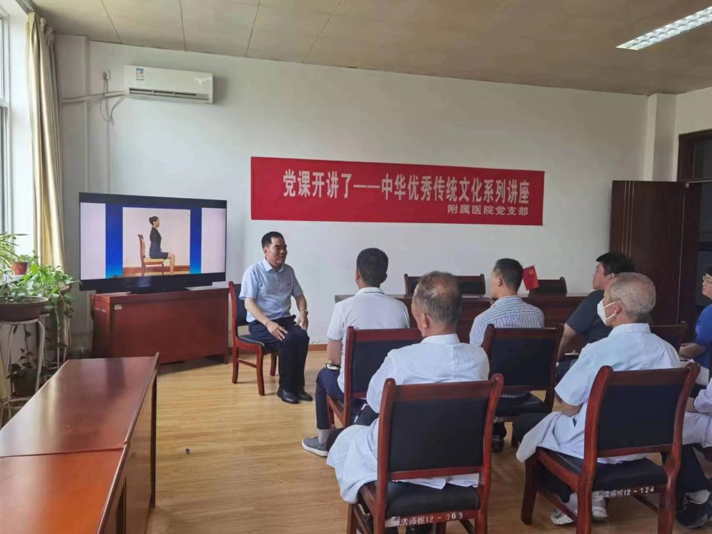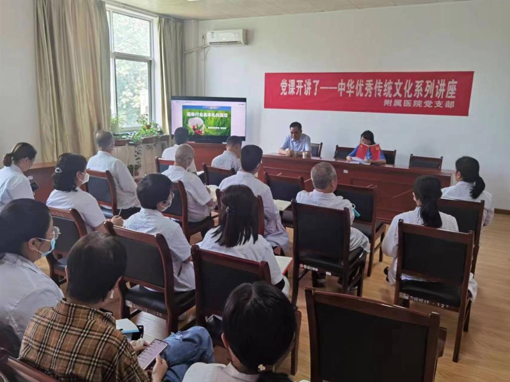 5月19日下午,为了将学习贯彻习近平新时代中国特色社会主义思想主题教育在工作中有效运用,推动主题教育活动走深走实,附属医院党支部在党员活动室开展了“党课开讲啦——中华优秀传统文化系列讲座”活动,特邀请人文学院副教授、中国史教研室主任、渭南市公务员培训中心特聘教师张始峰作第一讲《医务行业礼仪基本规范》的专题讲座,讲座由支部书记王雅蓉主持,支部全体党员、干部、医护参与了活动。