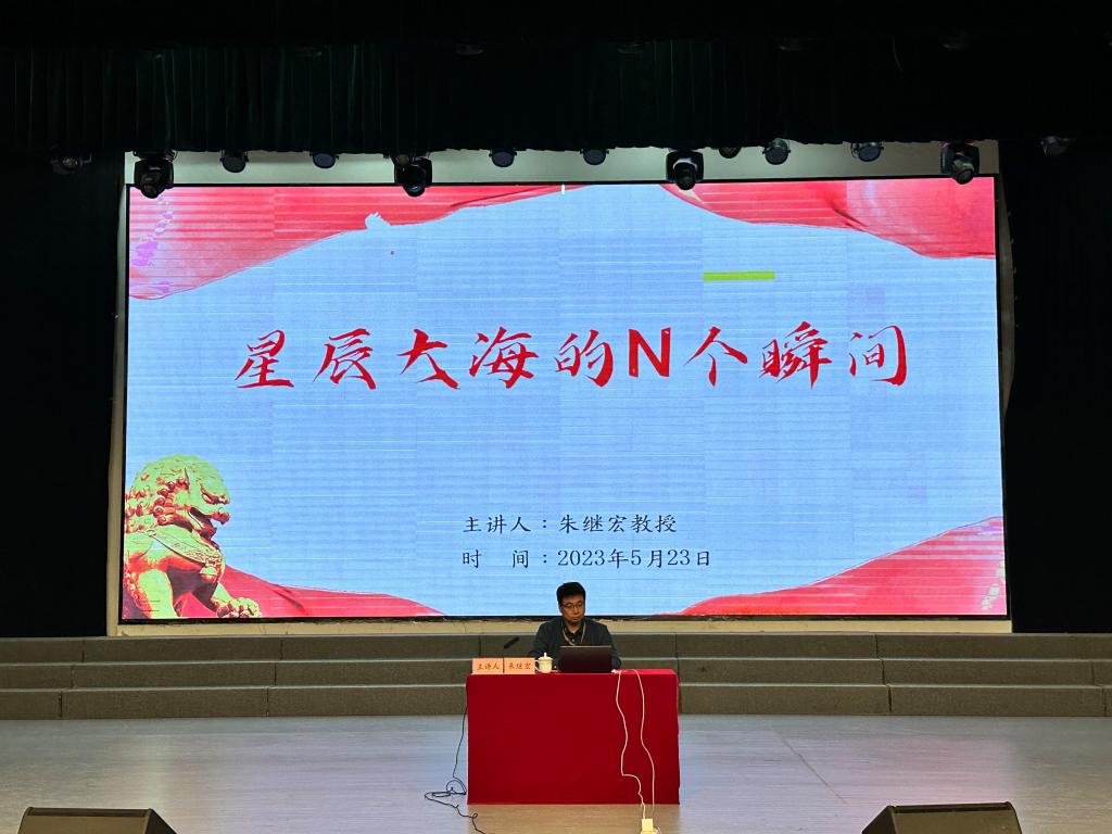 5月23日上午,西北工业大学教授、博导、比利时列日大学航空航天技术实验室博士、英国伦敦玛丽女王大学客座教授、青年拔尖人才、国家优秀青年科学基金、中国青年“五四”奖章团队获得者朱继宏教授应邀为我校师生作题为《星辰大海的几个瞬间》的科普报告。报告会由副校长王菊霞主持。