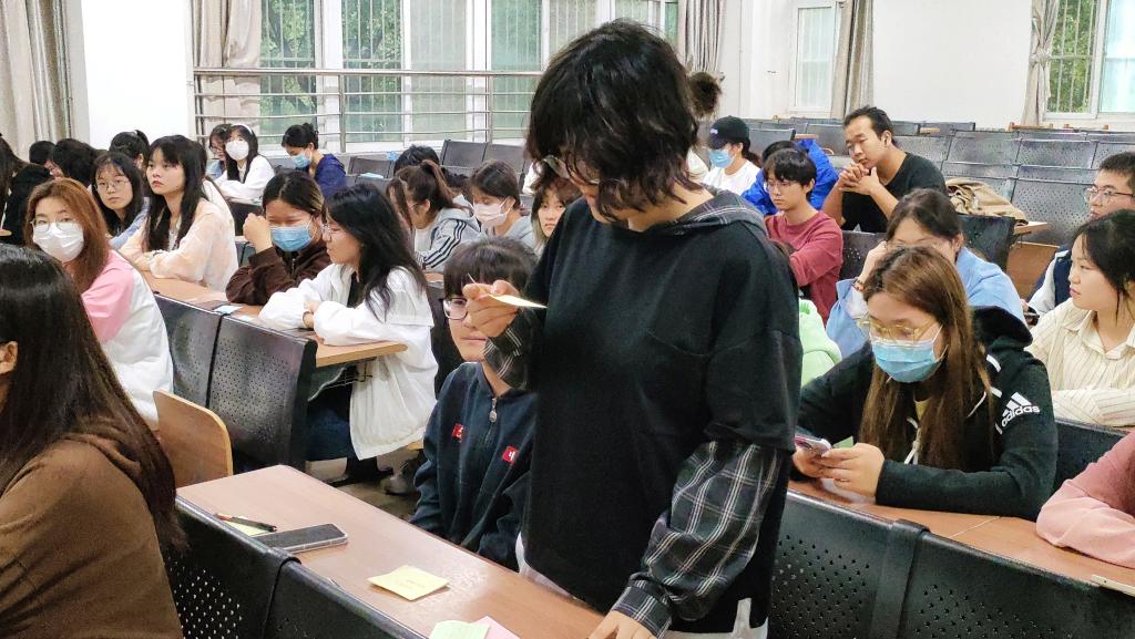 教育科学学院开展“爱自己,从‘心'开始”心理健康主题分享活动。同学们在便签纸上写下别人曾经对自己身高、外貌等各种评价的“标签”,由工作人员收集后再随机分发,同学们结合拿到的新“标签”谈自己的感想。活动中同学们踊跃发言,在解读“标签”的同时,分享自己的经历,并提出自己的建议。