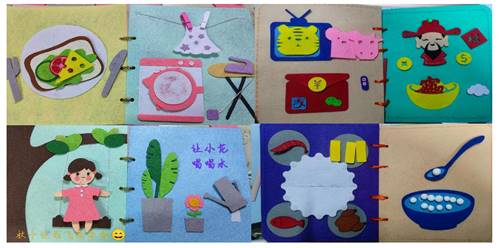“手工秀创意”展示区,展出手工作品40余幅,是本学期阴光艳老师、石洁老师、崔莹莹老师《学前教育机构教育环境创设(设计)》课程教学实践成果,由学前教育专业21级学生创作完成。作品包括装饰画、衍纸作品、不织布布书、掐丝珐琅画等不同类型的手工作品。这些手工作品均为学前教育专业学生亲手制作,体现出学前教育专业学生娴熟的专业技能。