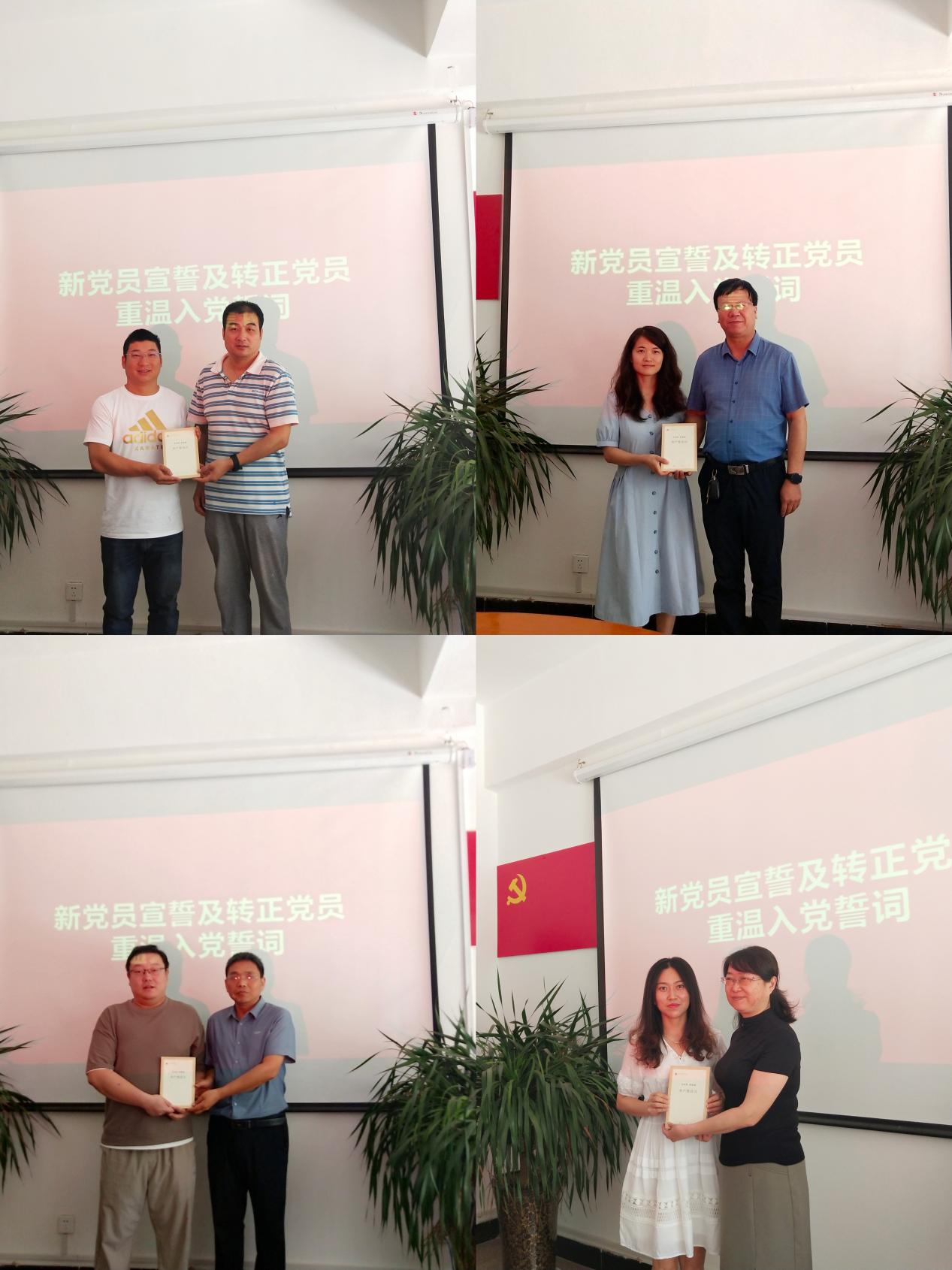 大家纷纷向四位同志表示祝贺,并希望新党员在品读党史明理增信中回望党的光辉历程,进一步坚定信仰信念信心;在对标榜样见贤思齐中践行入党誓言,进一步汲取为党工作的不竭动力,用优异成绩为党徽增光、为党旗添彩;在立足本职砥砺奋斗中诠释担当奉献,进一步发挥先锋模范作用,当好沟通群众的桥梁纽带,以实际行动诠释全心全意为人民服务的宗旨情怀,积极为学校各项事业的发展贡献自己的智慧和力量。(文:刘丁汇 图:张春丽 审核人 李维喆)
