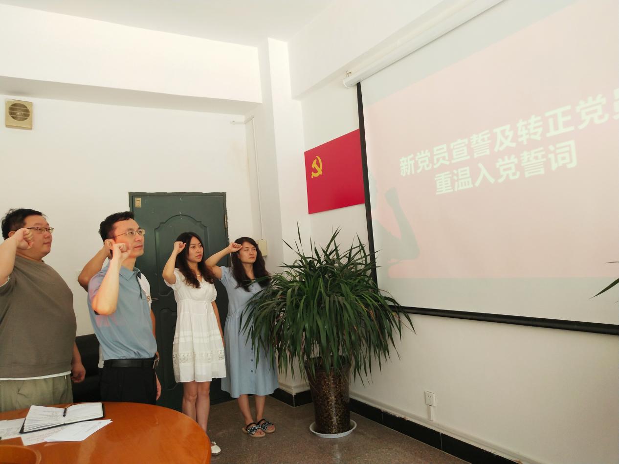 7月5日上午,我校附属单位党总支在党员活动室举行新党员入党宣誓及转正党员重温入党誓词仪式。党总支委员、各支部书记或负责人、党务工作者以及新发展党员、转正党员参加此次仪式。
