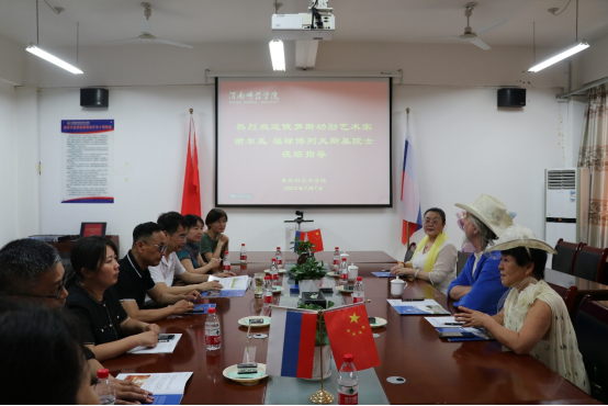 7月7日下午,俄罗斯功勋艺术家、俄罗斯彼得大帝科学与艺术研究院院士谢尔盖·尼古拉耶维奇·福禄博列夫斯基受邀莅临渭南师范学院莫斯科艺术学院,与美术学专业师生进行座谈交流。莫斯科艺术学院执行院长席景奇、副院长梁卫民、美术学院副院长石海彬、美术专业负责人石洁以及教师代表参加。
