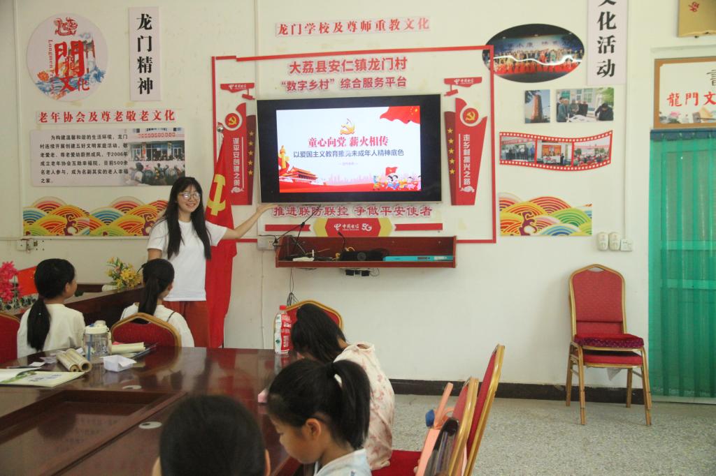 7月14日至7月18日,实践队开展了为期五天的守护龙门系列支教活动,活动内容包括开设课程:“童心向党,薪火相传”爱国教育主题课、“一字一句普通话,千言万语绘中华”普通话推广活动课、“笔走乾坤恢弘气,墨染中华四时春”师范生书法课,“青春无畏,逐梦扬威”主题趣味运动会,以及课余活动,村子的上空飘扬着孩子们的欢声笑语。