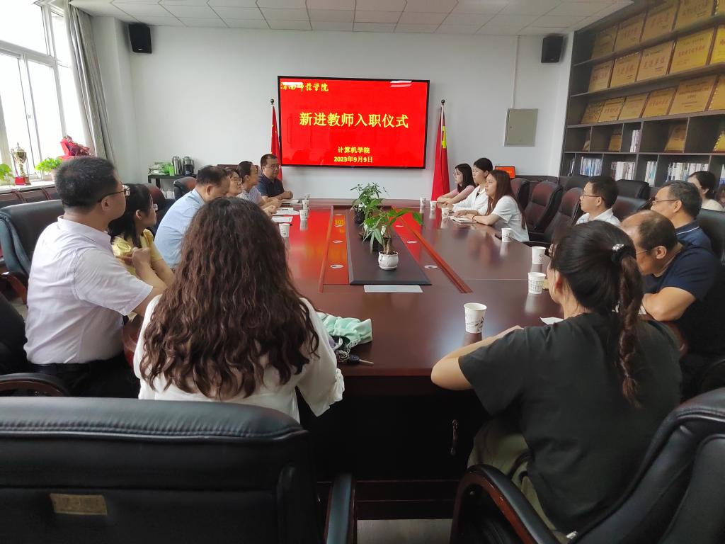 9月9日下午,计算机学院举办新进教师入职仪式,学校党委委员凌朝栋和教学督导付俊贤教授出席,学院党总支书记武楠,院长杨方琦,副院长哈渭涛,专业负责人、课程负责人、教书育人楷模、最美教师、辅导员、教师代表及三位新进教师参加,入职仪式由哈渭涛主持。