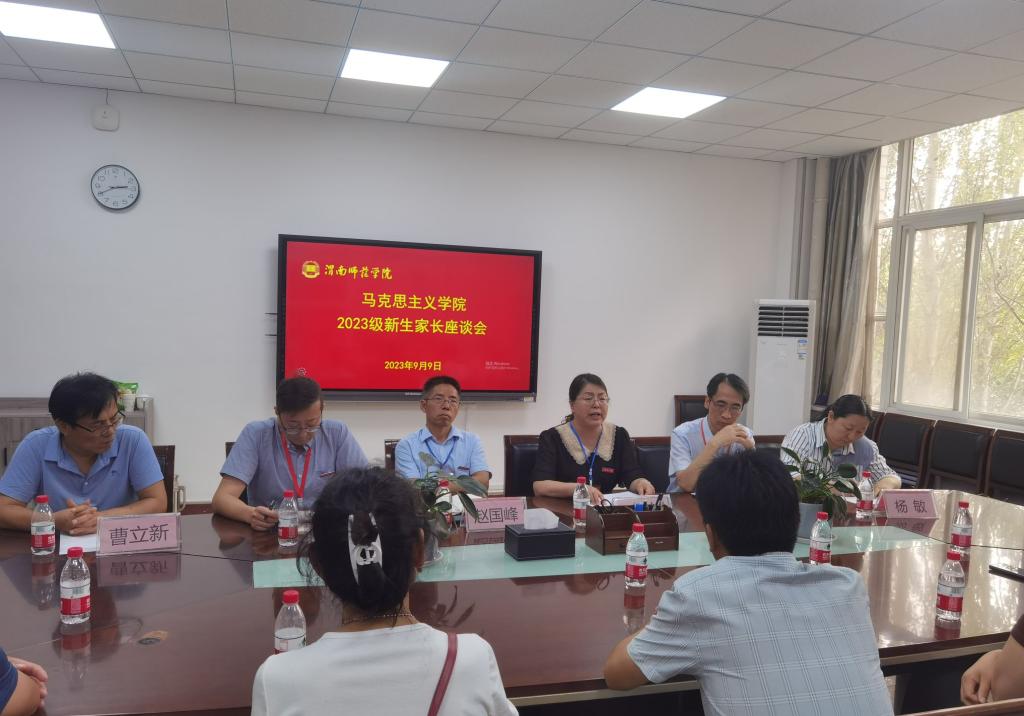 9月9日下午,马克思主义学院召开2023级新生家长座谈会。学院党政领导班子、专业负责人、新生辅导员及家长代表参加了会议。会议由党总支副书记肖飞主持。