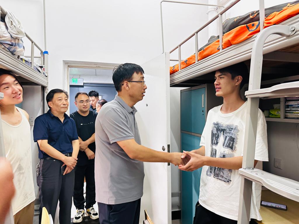 9月9日晚,副校长曹强深入人文学院学生宿舍看望慰问2023级新生,送去暖心的关怀和问候。人文学院领导班子、全体行政人员陪同走访。