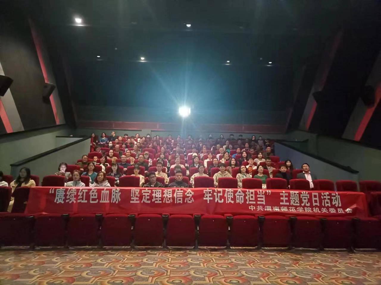 在抗美援朝战争胜利70周年之际,为致敬英烈、铭记历史、传承爱国主义精神、激励奋进新征程,10月8日,机关党委组织机关党员干部和机关各支部结对共建的二级学院师生融合党支部党员等120余人开展观看爱国主义影片《志愿军:雄兵出击》主题党日活动。同时,邀请我校人文学院历史系主任王文涛老师为大家重温这段历史,讲解伟大抗美援朝精神。学校领导以普通党员身份参加此次活动。