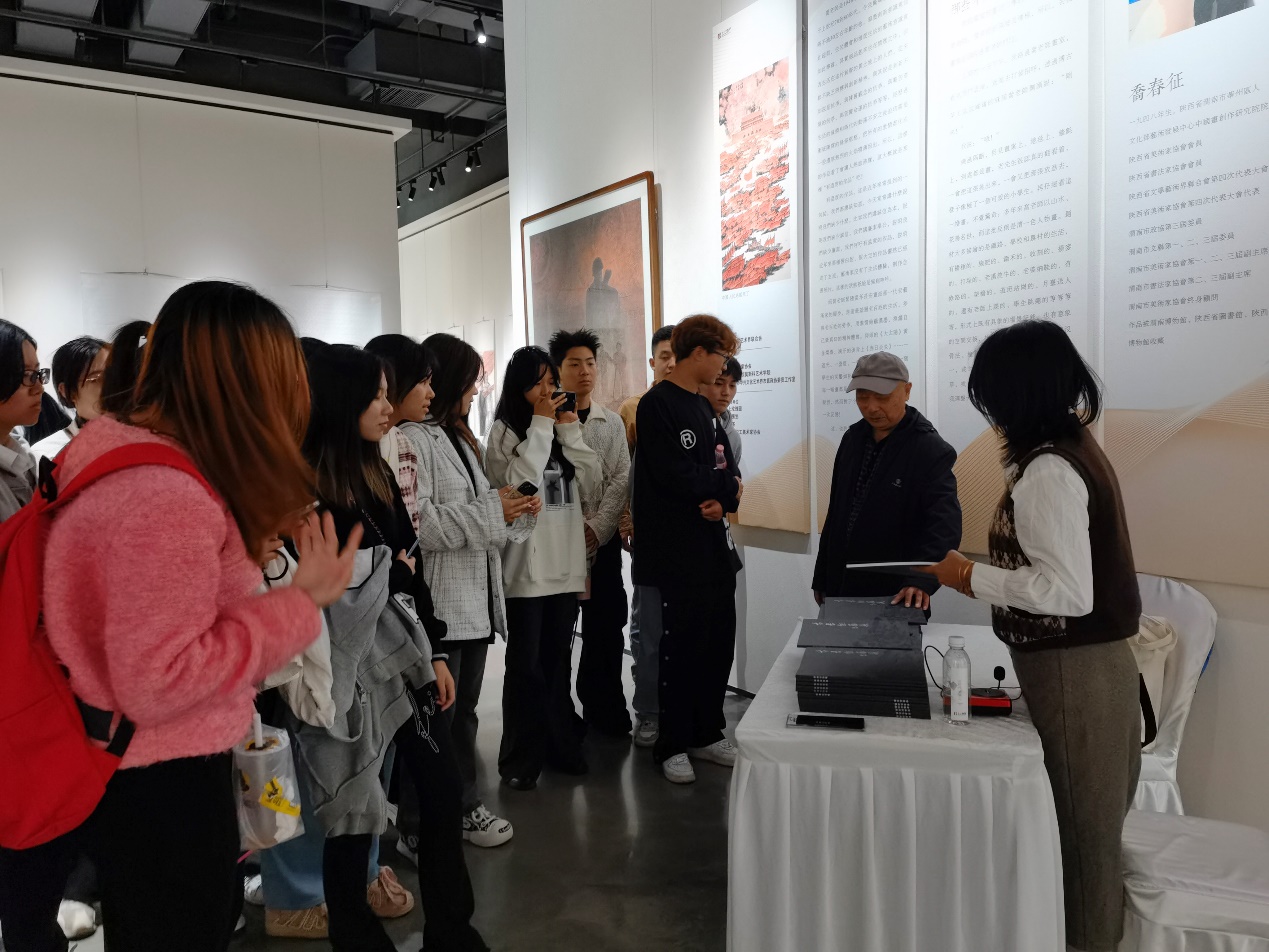10月9日,莫斯科艺术学院美术学专业组织部分师生到渭南市松·美术馆参观“岁月留痕”乔春征国画人物展,在展厅现场,乔春征老师根据他的人物画创作历程为师生们进行了一场别开生面的绘画创作主题的报告。