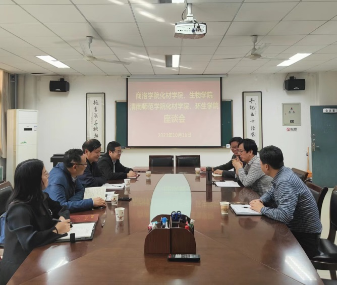 10月16日下午,商洛学院化学工程与现代材料学院院长周春生、副院长曹宝月,生物医药与食品工程学院院长王学军、副院长梁旭华一行4人来化学与材料学院参观交流。化学与材料学院院长焦更生、副院长刘展晴,环境与生命科学学院院长吴逸群参加座谈会。