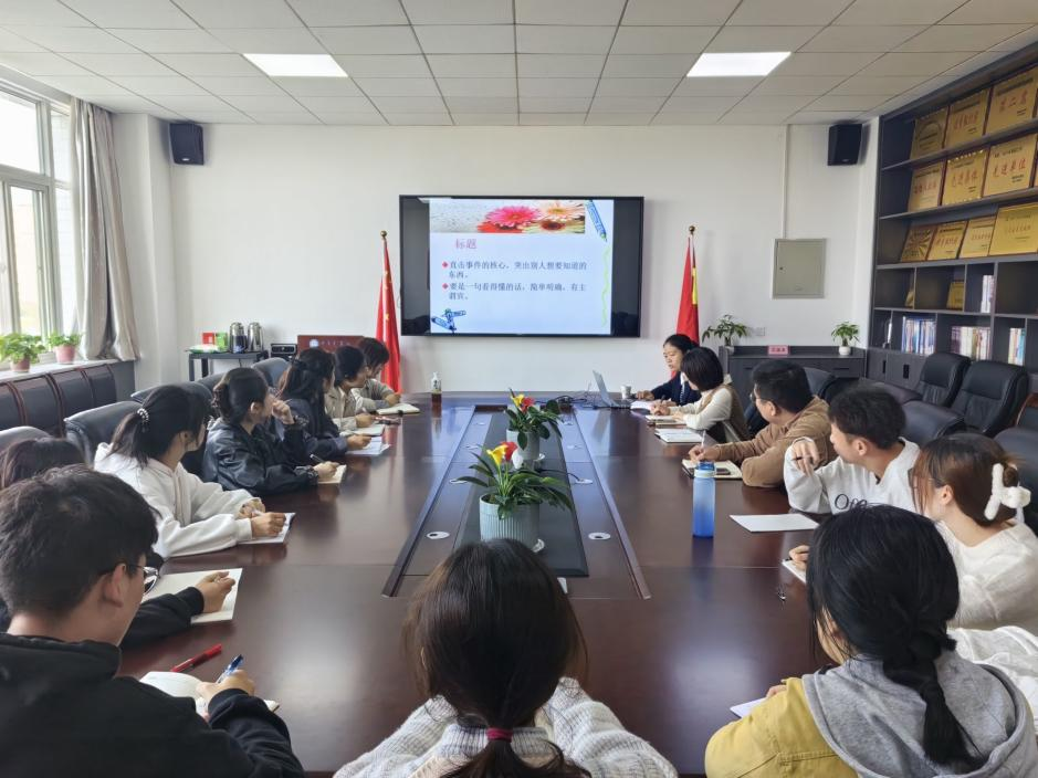 10月23日下午,计算机学院开展新闻写作方法与技巧培训会。会议特邀渭南日报教育周刊副主编,高级编辑毕云丹作报告。学院党总支副书记张俊娜及学院部分师生参加培训会。