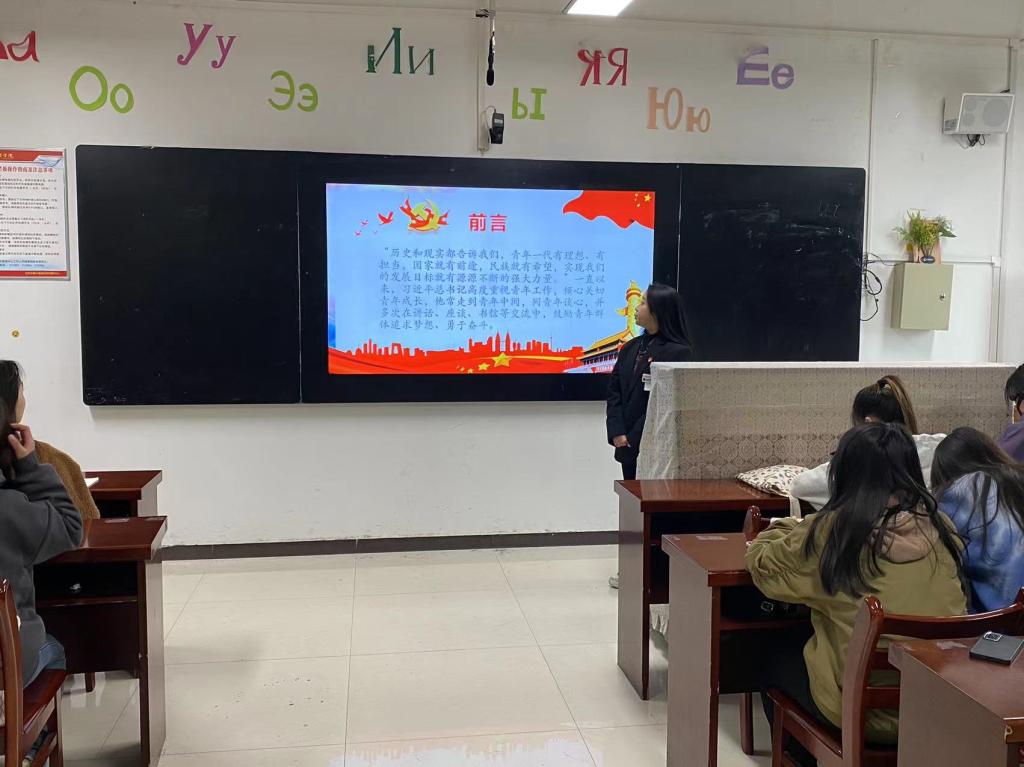 活动前,学生党员蔡垚以“点亮青春理想 激昂奋斗旋律”为主题带领大家进行理论学习,并共同学习了央视网《天天学习》栏目“把个人的理想追求融入党和国家事业之中”“珍惜韶华、奋发有为”两篇文章。