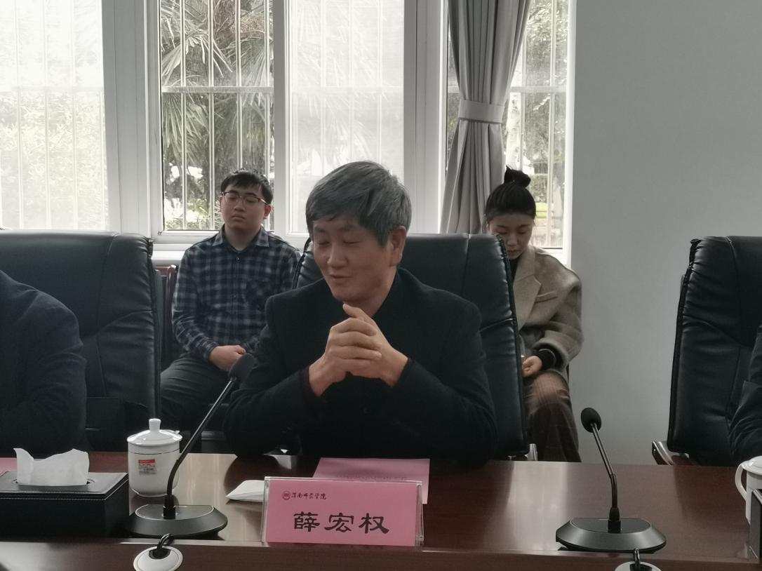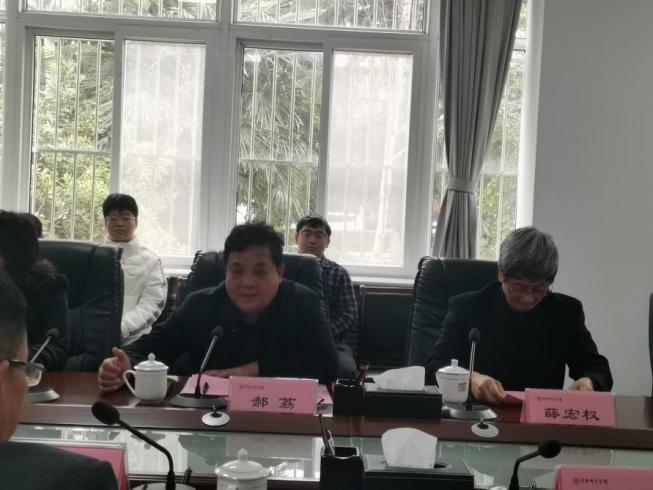 渭南市文物旅游局副局长郝荔、文物旅游局行管科科长杨文军,中国工艺美术大师薛宏权,西安石油大学人文学院院长李涛,西安邮电大学党总支副书记刘俐,我校计算机学院院长杨方琦、副院长哈渭涛以及我校传媒学院、计算机学院的师生代表等共计30余人,会议由传媒学院院长曹熙斌主持。