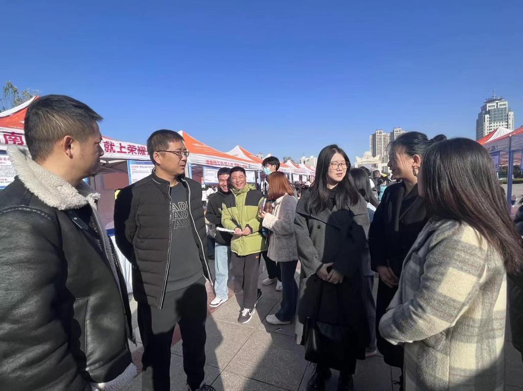 11月17日上午,2023年大中城市联合招聘高校毕业生专场活动暨渭南师范学院冬季综合类校园招聘会在渭华门广场举办。外国语学院2024届部分毕业生在党总支副书记、副院长高军强和辅导员的带领下参加了本次招聘会。