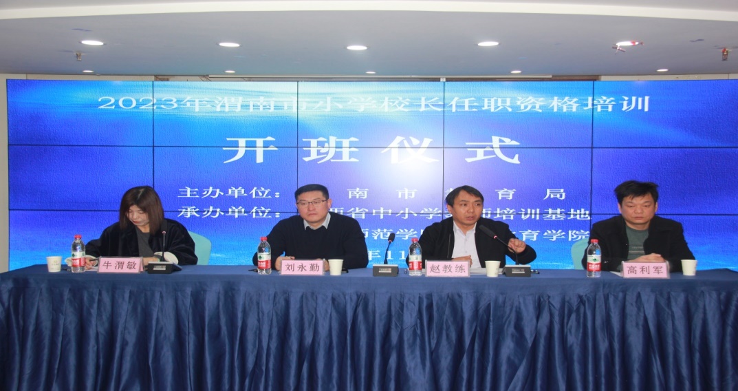 11月20日上午,我校承办的2023年渭南市小学校长任职资格培训在华年酒店顺利开班。来自渭南市各区(县)的90名校长们参加了开班仪式,继续教育学院院长刘永勤、培训项目首席专家赵教练、班主任高利军出席。仪式由继续教育学院办公室主任牛渭敏主持。