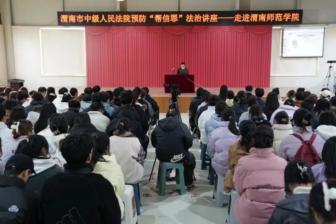 为了增强在校大学生的法律意识和法治观念,提升自我保护能力,近日,我校与渭南市中级人民法院在渭师青年之家大学生活动中心联合开展预防“帮信罪”的主题法治活动。渭南市中级人民法院法官干警走进大学校园,通过法治讲座和普法宣传,将法治“大餐”送到大学生身边。