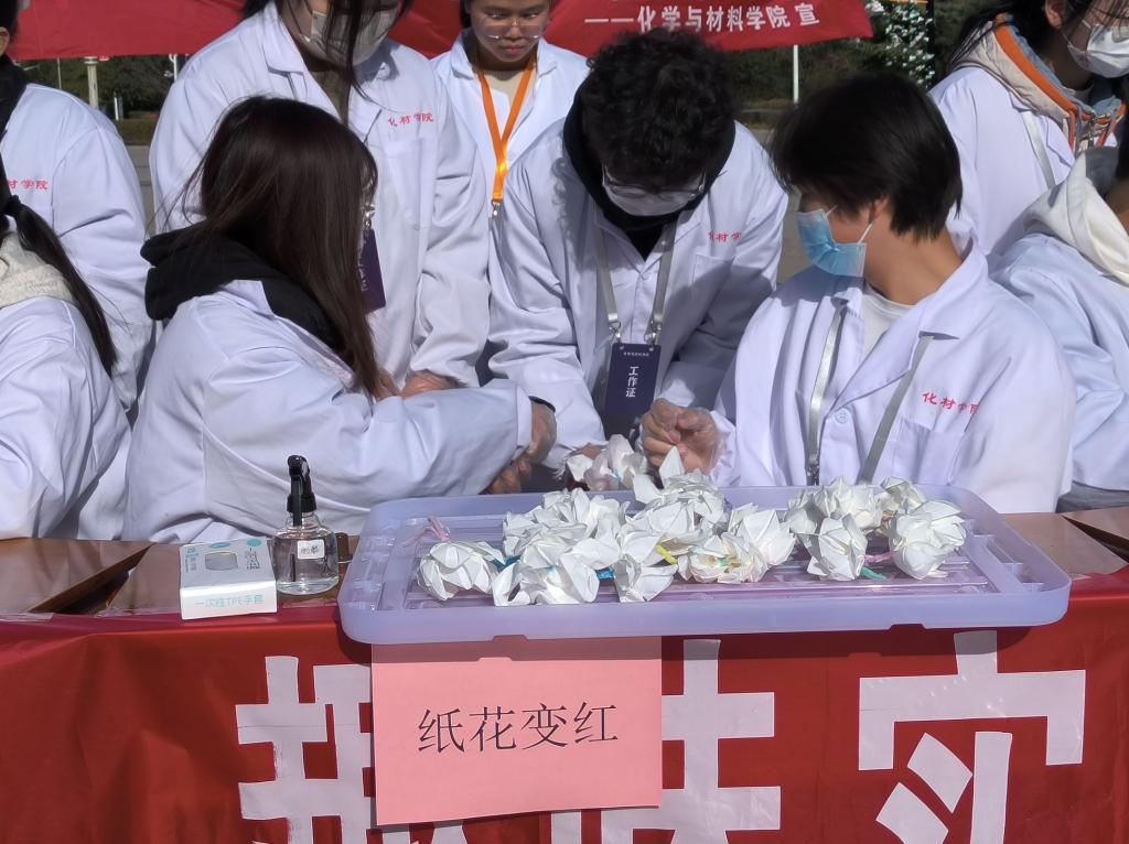 12月6日下午,化学与材料学院于渭华门广场举办了面向渭南师范学院全体师生的“青春化梦 化海畅游”化学奇缘嘉年华系列活动。校团委书记赵琦、副书记刘娟宁,化学与材料学院党总支书记韩城忠、副书记任晓婷、团委负责人张静及全体辅导员出席活动,来自全校500余名学生参与活动。