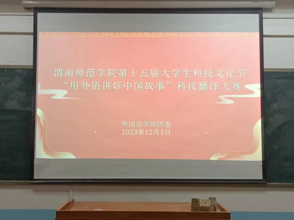 12月5日,由外国语学院承办的渭南师范学院第十五届大学生科技文化节“用外语讲好中国故事”科技翻译大赛顺利举行。本次翻译大赛内容围绕大学生科技文化节展开,以中国航天事业的发展进程和最新成果为主题。
