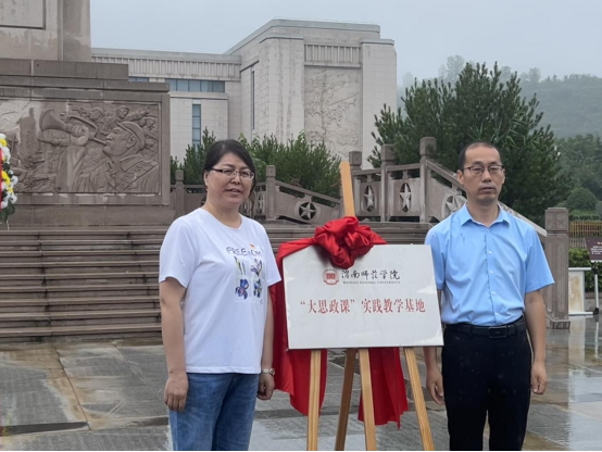 上午9点,全体师生到达扶眉战役广场,在革命烈士纪念碑前,举行了庄重的悼念仪式,全体师生默哀,向革命先烈三鞠躬,深切缅怀革命先烈的丰功伟绩,寄托对革命先烈的无限哀思。思政课教师代表周韶尉、关帅向纪念碑敬献花篮,马克思主义学院党总支书记赵国峰,院长张萍上前整理挽联并鞠躬悼念。张萍院长与韩伟副馆长共同为渭南师范学院马克思主义学院与扶眉战役纪念馆共建“大思政课”实践教学基地揭牌。