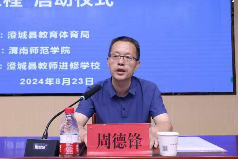 周德锋在讲话中表示,“双百工程”助力乡村振兴工作,是落实党中央和省委决策部署的重要举措,是践行“两个维护”的实际行动,是落实立德树人根本任务的载体。学习运用“千万工程”蕴含的发展理念、工作方法和推进机制,以“澄城县基础教育能力提升产学研一体化示范基地”建设为载体,教师培训将紧扣目标标准,坚持精准方略,聚集优势资源,通过短期培训、长期研修、入校诊断、远程研讨等形式开展,支持澄城县教师队伍建设,为澄城县的教育质量提升打基础、做铺垫、立长远。积极构建切合实际的培训培养运行机制,促进澄城县广大教师专业成长,努力建设一支政治素质过硬、专业能力精湛、育人水平高超的教师队伍。2024年“双百工程”结对帮扶澄城县教师培训,围绕“践行新课标 构建好课堂 赋能新成长”这一主题,坚持“分层分类、分段分科”精准培训,坚持任务驱动,坚持实践取向,坚持成果引领,做中学、学中做,将学习成果应用于实践,促进教师专业成长。同时,他提出珍惜机会、加强交流、学以致用的三点要求。