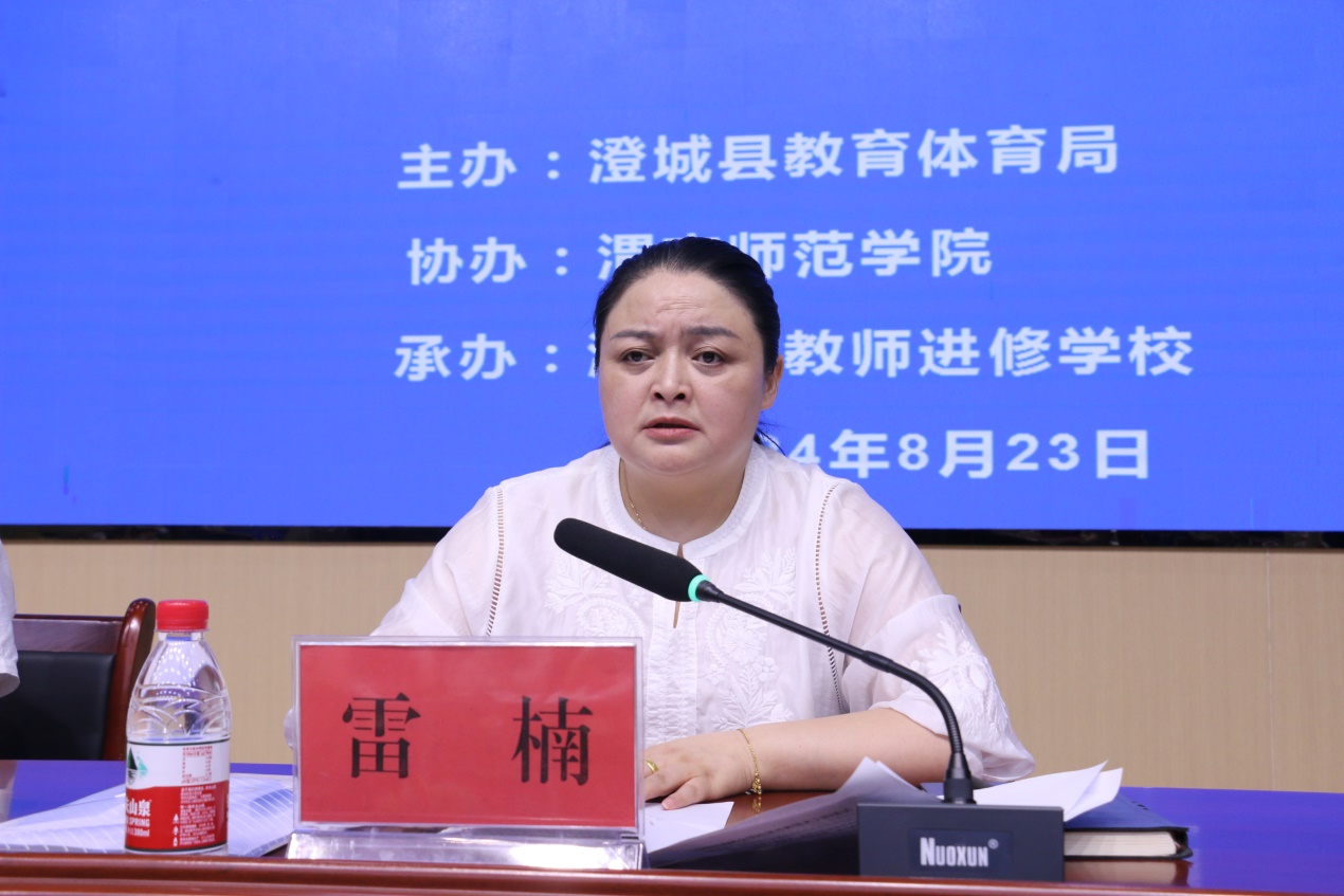 雷楠强调,教师培训是澄城县教育内涵发展的重要举措,本次培训旨在坚持“教育者先受教育”,推进教学改革,落实新课标要求,提高新课程实施能力,助力澄城县教育高质量发展。她要求全体参训教师,一是高度重视,增强学习的自觉性;二是强化意识,提高学习的主动性;三是深入思考,培养学习的创造性。她希望参训教师珍惜难得的培训机会,潜心参训研学、用心领悟笃行,强化使命担当,大力弘扬教育家精神,以新的才干、新的姿态,在新学年新学期再创新业绩,推动澄城县教育再上新台阶!