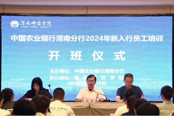 8月19日,由中国农业银行渭南分行主办、渭南师范学院承办的中国农业银行渭南分行2024年新入行员工培训在继续教育学院第一培训室开班。中国农业银行渭南分行组织部部长黄健、继续教育学院直属党支部书记周德锋出席开班仪式,66名新员工参加本次培训学习。