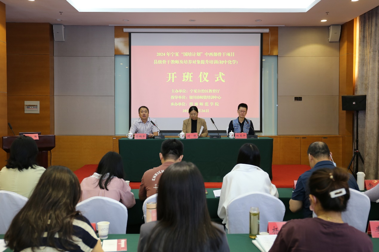 8月26日上午,由宁夏回族自治区教育厅主办,银川市师资培训中心指导,渭南师范学院承办的2024年宁夏“国培计划”中西部骨干项目-县级骨干教师及培养对象(初中化学)提升培训在宁夏固原市顺利开班。我校继续教育学院副院长苟鹏军,项目首席专家、化学与材料学院教授刘艳、环境与生命科学学院教授权美平出席开班仪式。来自银川市的50名化学骨干教师参加开班仪式。
