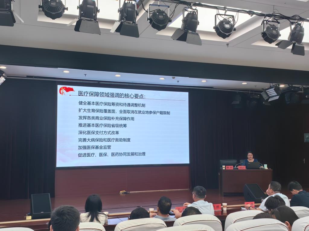8月23日,张萍在渭南市医疗保障局以《领航新时代 奋进新征程》为题,带领与会人员全面深入学习了全会召开背景、重大意义、重点内容和《中共中央关于进一步全面深化改革、推进中国式现代化的决定》的“五个目标”“六个坚持”“七个聚焦”的丰富内涵、十四个方面的改革任务,并从“深化医药卫生体制改革”等角度着重讲解了医疗保障领域强调的核心改革要点。
