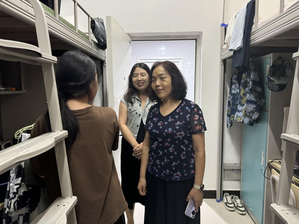 9月7日晚,学校党委委员、副校长王菊霞深入宿舍看望美术学院2024级新生。美术学院党政领导班子及新生辅导员陪同。