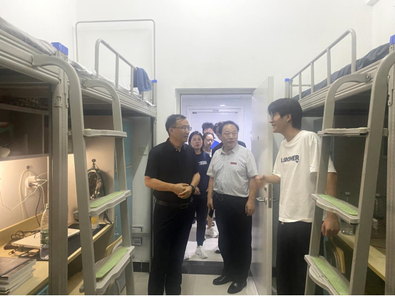 田超一行还对新生宿舍进行了设施安全检查工作。经排查,新生宿舍整体情况良好。