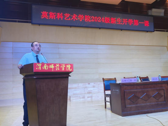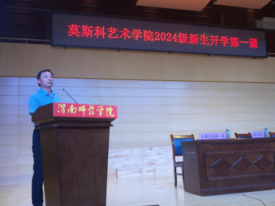 9月9日晚,莫斯科艺术学院2024级新生“开学第一课”在逸夫楼音乐厅顺利举行,学校党委委员、副校长王菊霞参加此次活动,会议由党总支书记孟波主持。