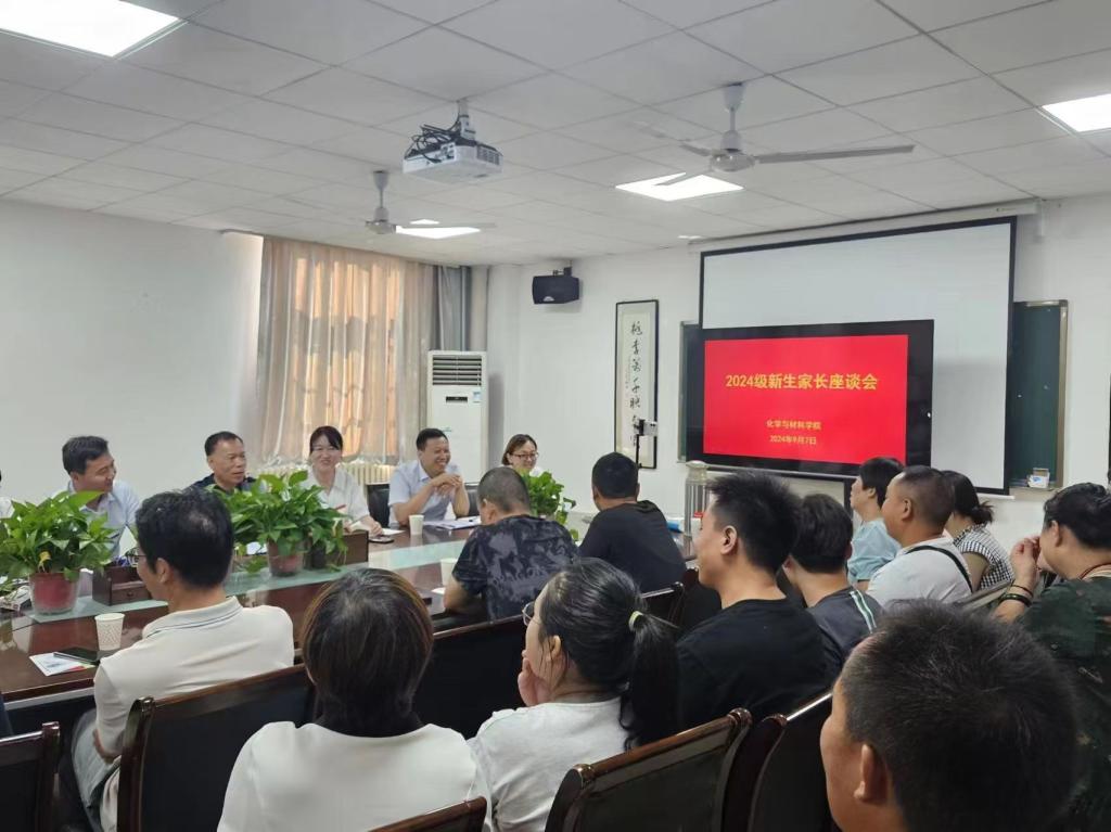 9月7日下午,化学与材料学院举办新生家长座谈会,学院党总支书记韩城忠、院长刘展晴、党总支副书记刘娟宁、副院长朱科、各专业建设负责人和30余名新生家长代表参加座谈会,百余名新生家长线上参加座谈会。