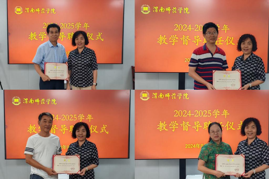 聘任仪式上,白秀英介绍了新学年校级教学督导聘任工作的基本情况,宣读了《关于聘任王炳社等15人为2024-2025学年教学督导的通知》(渭师院发〔2024〕45号)文件。副校长王菊霞代表学校为教学督导颁发聘任证书并与每位督导合影留念,质评处副处长雷建平带领大家学习《渭南师范学院教学督导管理办法》,督导团团长王炳社做表态发言。