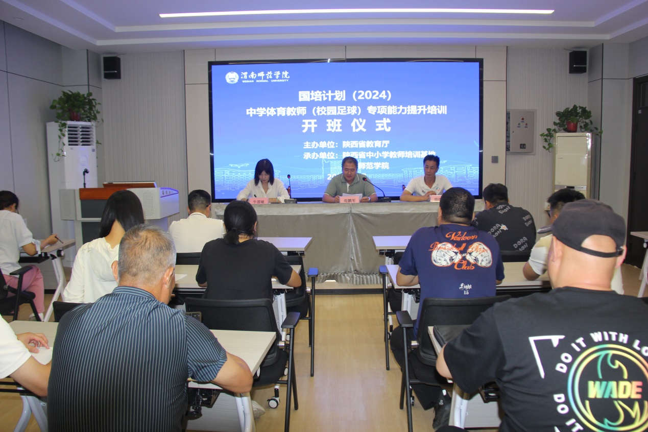 9月21日上午,国培计划(2024)--中学体育教师校园足球专项能力提升培训项目在继续教育学院第一培训室举行开班仪式,继续教育学院副院长苟鹏军,项目首席专家曾四清出席,继续教育学院办公室主任牛渭敏主持。来自全省各县市的50名中学体育教师齐聚渭南师范学院,进行为期5天的培训。