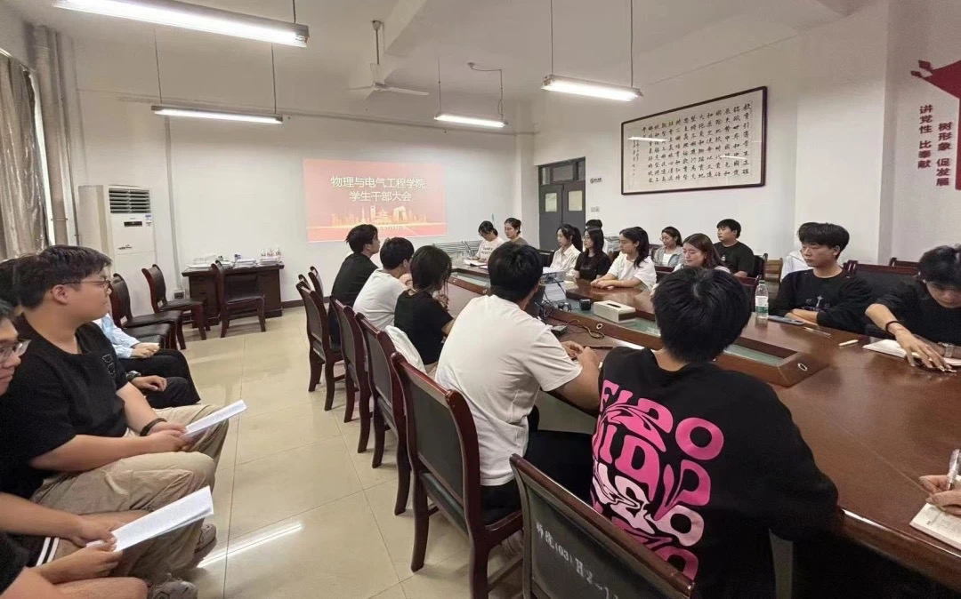 为有效提高学生干部的组织管理能力和创新实践能力,进一步明确工作开展的方向、目标,增强其责任意识、大局意识,9月27日下午,物理与电气工程学院在2418组织召开2024年秋季学期学生骨干大会。学院党总支副书记权轻舟、团委书记盛盟、辅导员李雪荣与部分学生干部出席本次会议。
