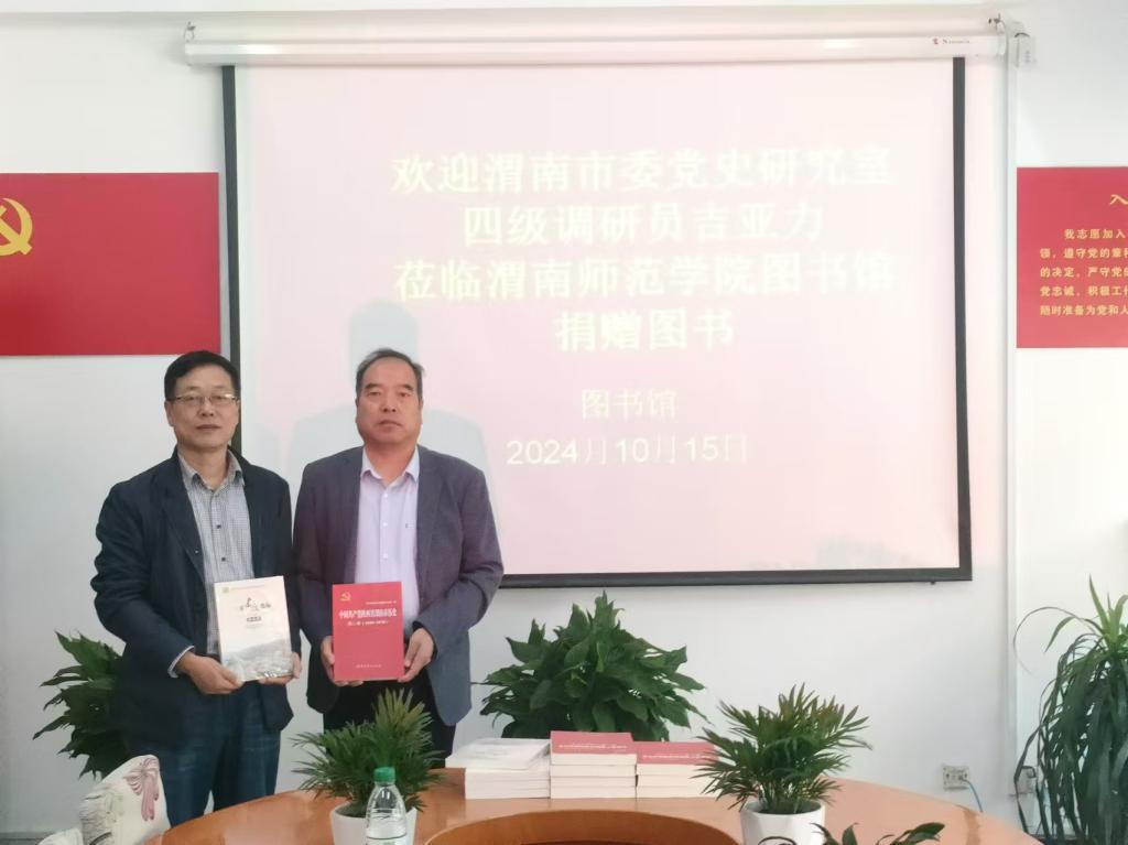 10月15日上午,吉亚力先生代表中共渭南市委党史研究室向学校图书馆捐赠党史类图书42余册,丰富了我馆地方文献馆藏,为地方红色文献资源注入新活力。