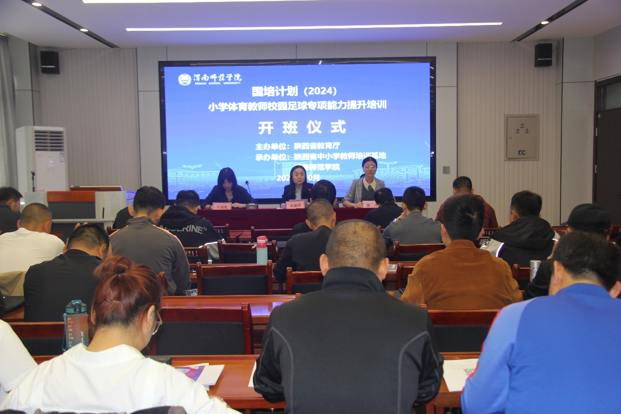 10月10日上午,国培计划(2024)—小学体育教师校园足球专项能力提升培训项目在继续教育学院第一培训室举行开班仪式,继续教育学院副院长宋丽萍出席、办公室主任牛渭敏主持仪式。来自全省各县市的50名小学体育教师齐聚渭南师范学院,进行为期5天的培训。
