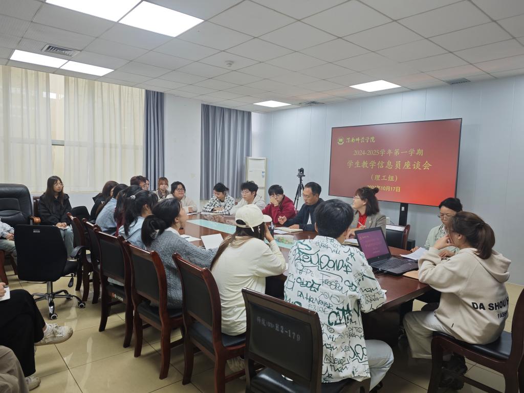 为进一步加强教学质量监控,及时、准确了解并解决学院教学运行过程中存在的问题,提升教学质量,10月17日,教学质量监控与评估处在厚德楼3702会议室召开了2024-2025学年第一学期教学信息员(理工组)座谈会。质评处相关领导及理工类专业教学信息员21人参加座谈会。座谈会由质评处副处长雷建平主持。