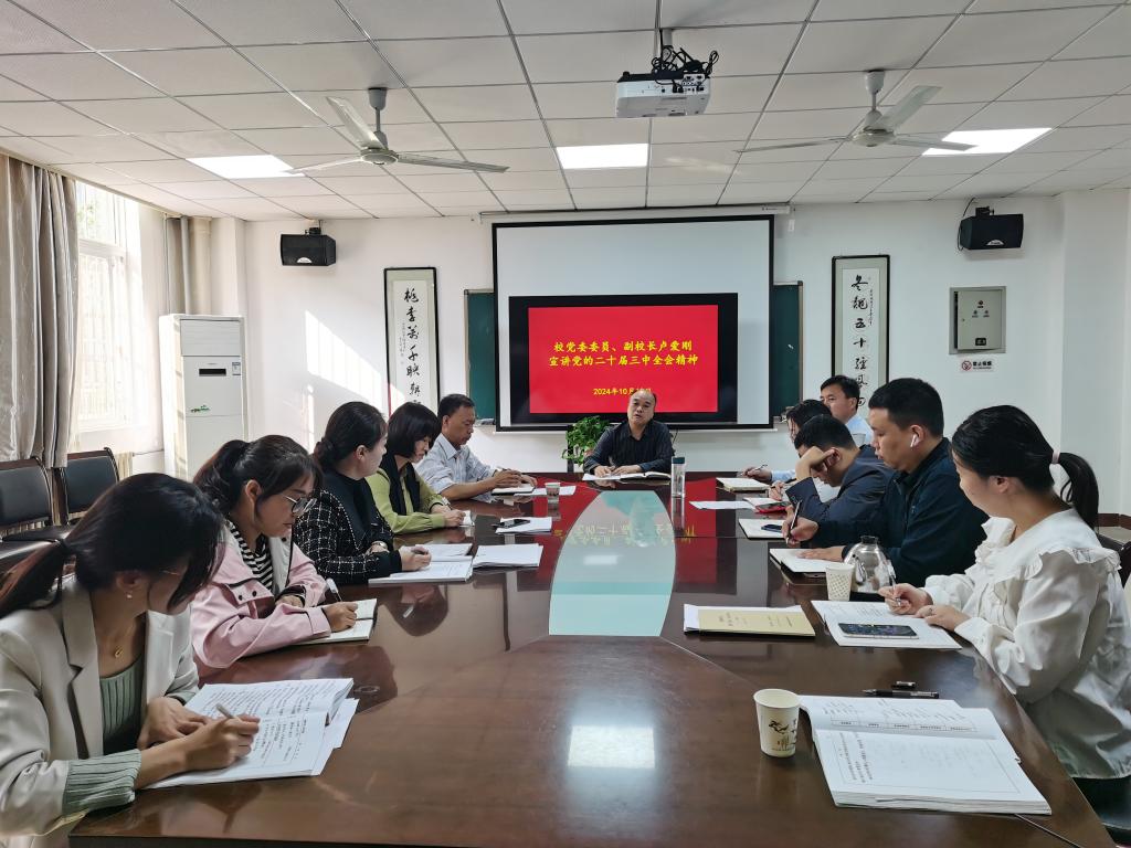 韩城忠带领全体成员领学了习近平总书记发表在《求是》杂志的重要文章《在文艺工作座谈会上的讲话》,大家认真学习了《中国共产党统一战线工作条例》《渭南师范学院弘扬教育家精神引领高素质队伍建设工作方案》等内容。韩城忠强调,全体领导干部要继续加强理论学习,深入学习贯彻党的二十届三中全会精神和全国教育大会精神,大力弘扬教育家精神,加强新时代高素质专业化教师队伍建设。随后,理论学习中心组成员刘娟宁、沙丹结合各自工作实际进行了研讨交流发言。