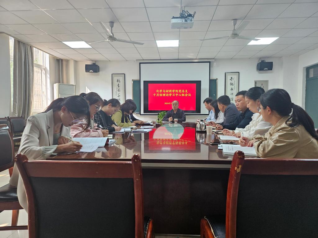 10月18日下午,化学与材料学院党总支召开十月份理论学习中心组专题学习,校党委委员副校长卢爱刚到会巡听指导,学院理论学习中心组成员和处科级干部参加学习。会议由党总支书记韩城忠主持。